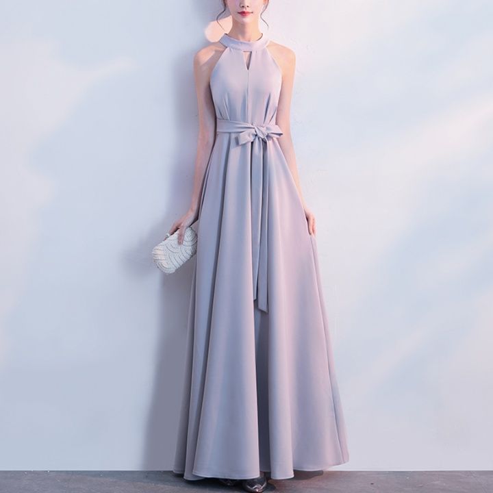 ドレスのロング丈デザインは落ち着いた雰囲気を演出し、フォーマルなオケージョンにも対応できます。