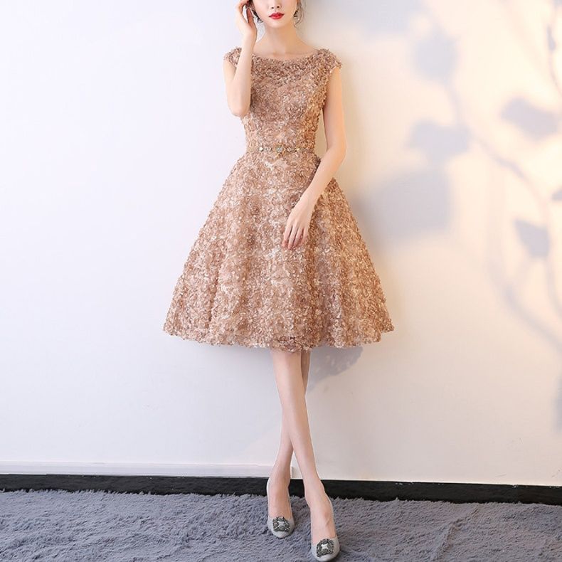 華やかな総刺繍レースが全体に施されたオケージョン ドレスです。