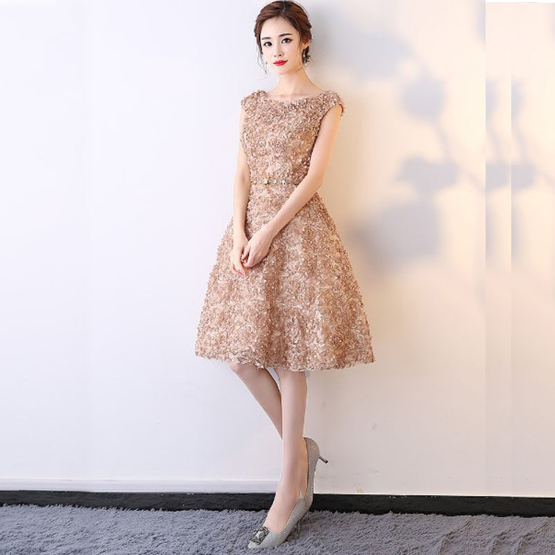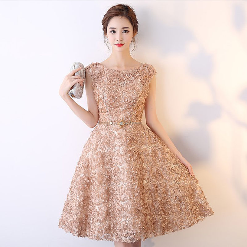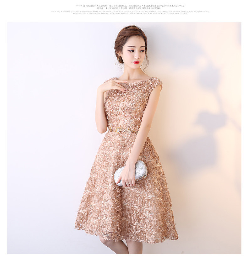 華やかな立体フラワーレースが全体に施された、オケージョン ドレスにぴったりのワンピースです。