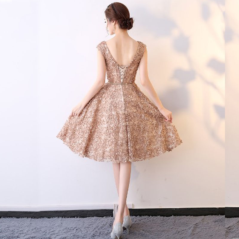繊細なスパンコールとビーズ装飾が光を受けて美しく輝き、特別な日を演出します。