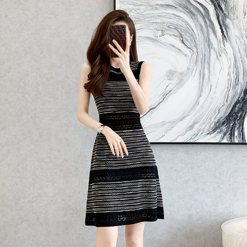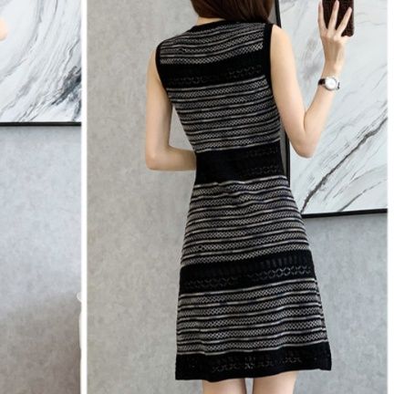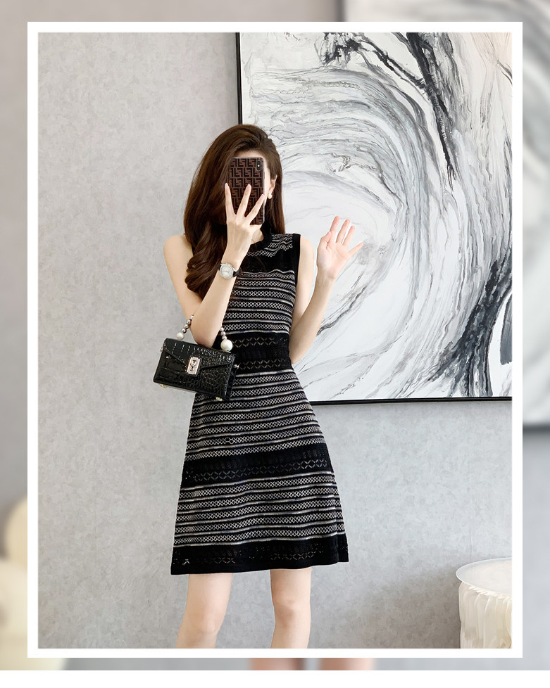 上品なノースリーブデザインで、すっきりとした縦ラインを演出します。