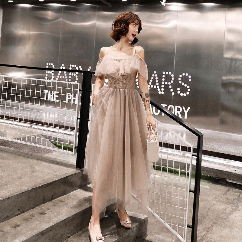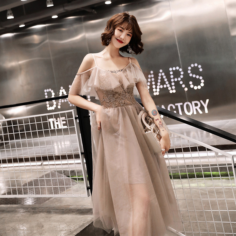 肩を優雅に見せるオフショルダーデザインのオケージョン ドレスです。