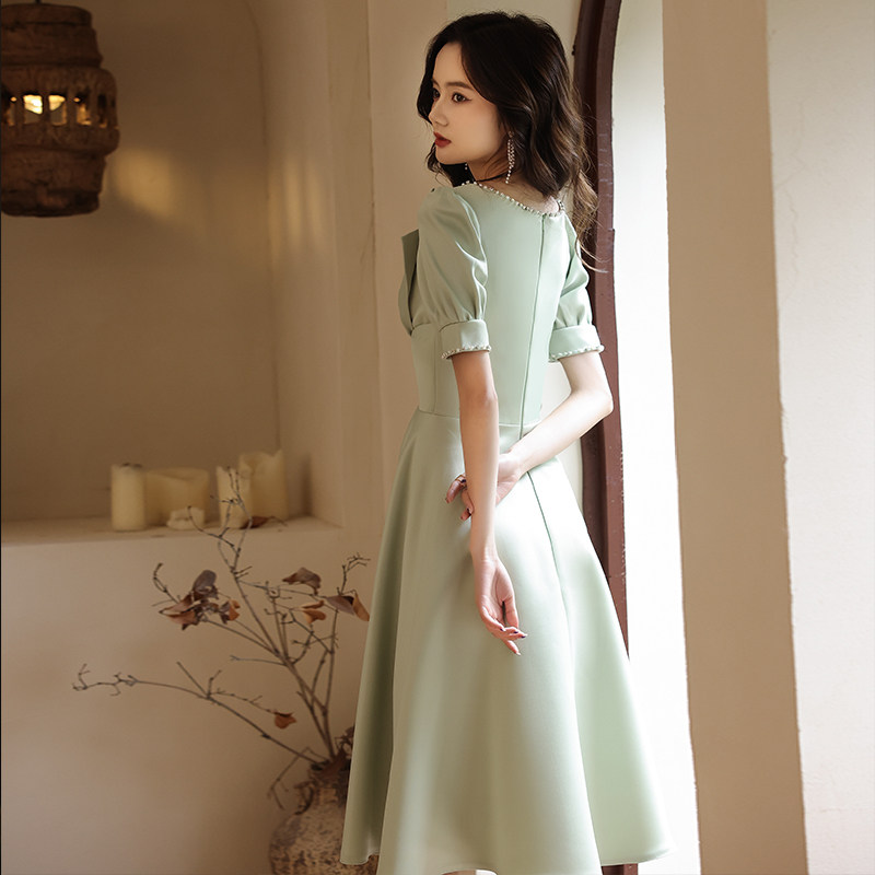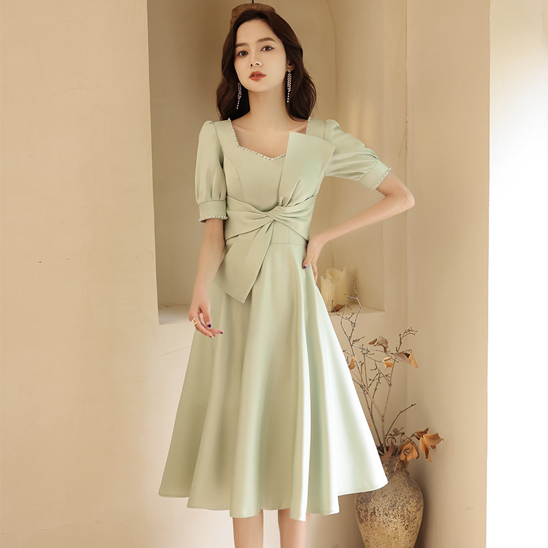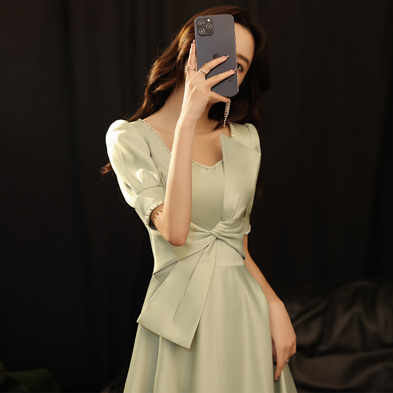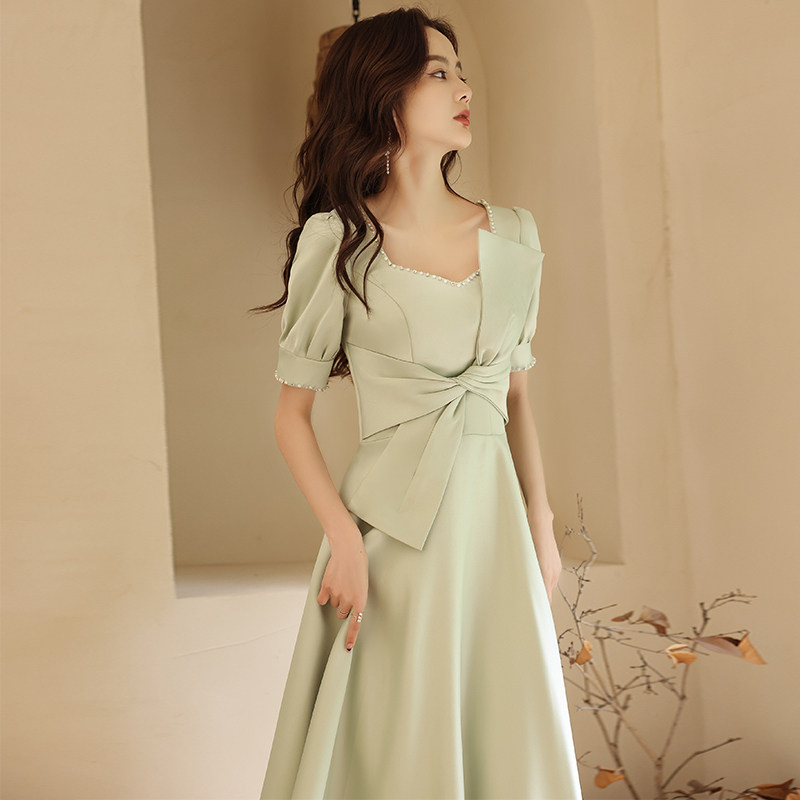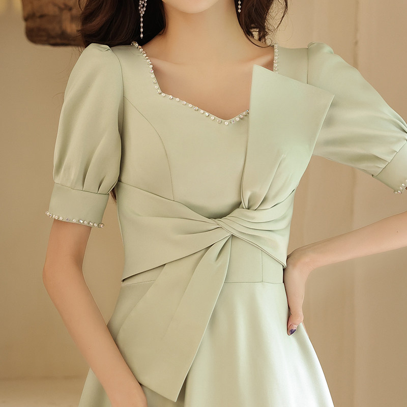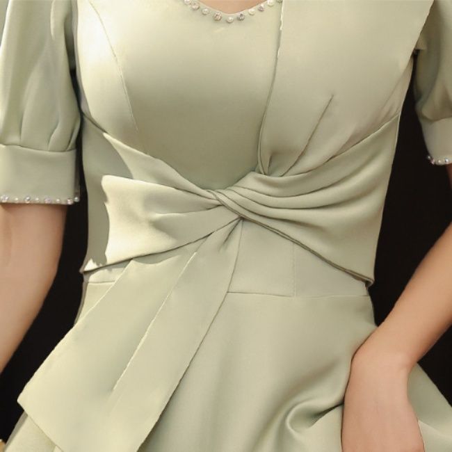 上品なパフスリーブと大きなリボンが印象的なオケージョン ドレスです。
