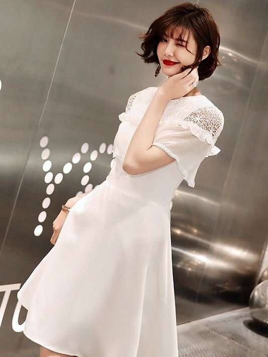 肩部分に施された美しいレース模様が、シンプルなデザインにエレガントなアクセントをプラス