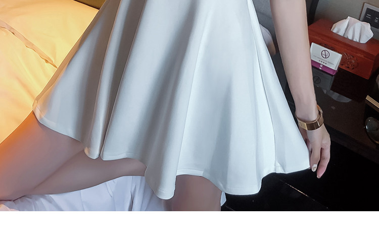 深めのVネックラインが女性らしいデコルテを美しく演出するオケージョン ドレスです。