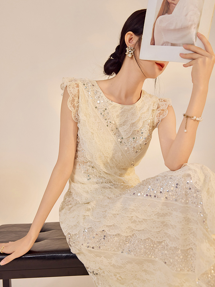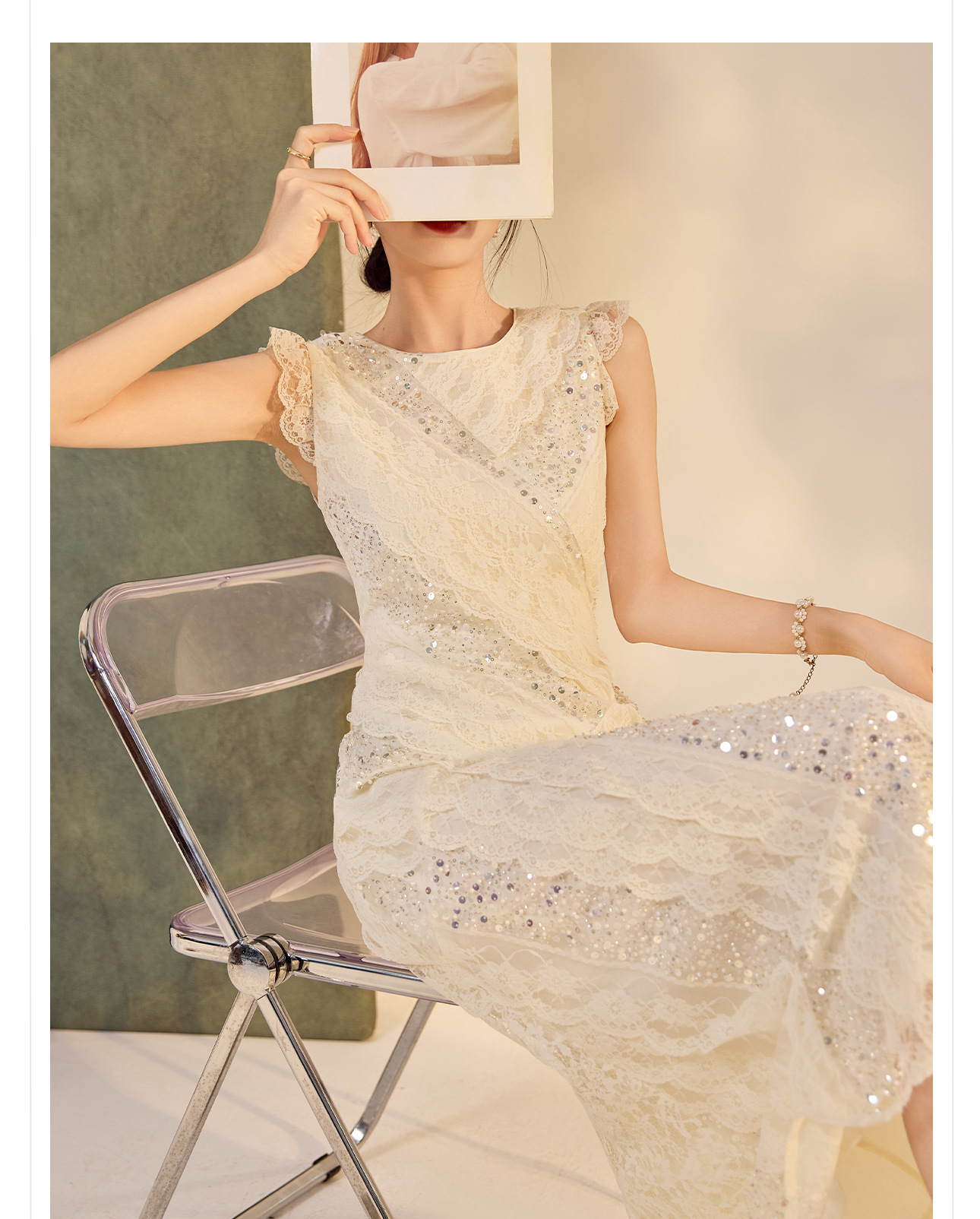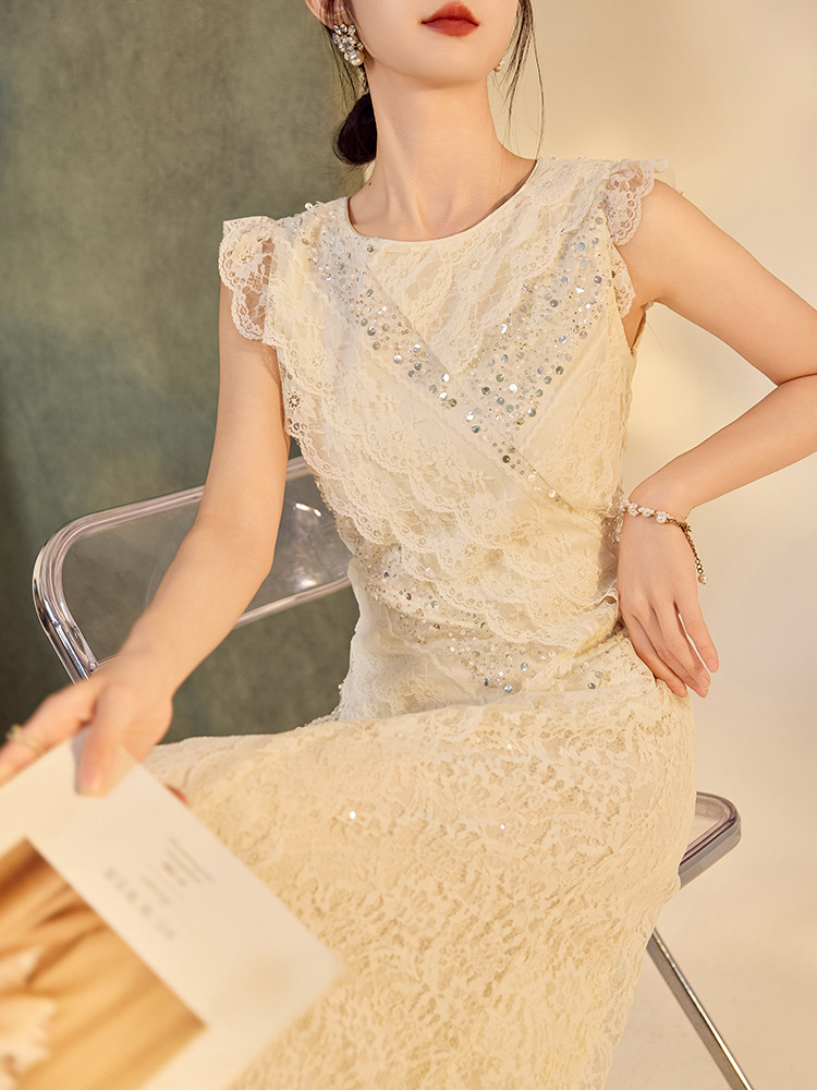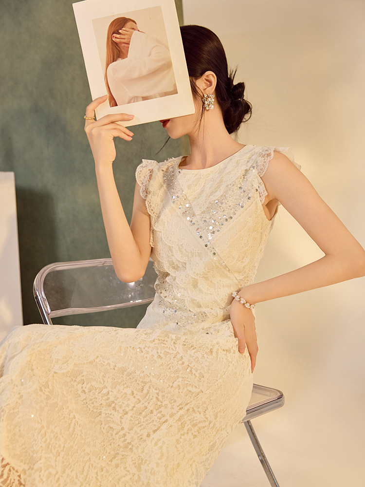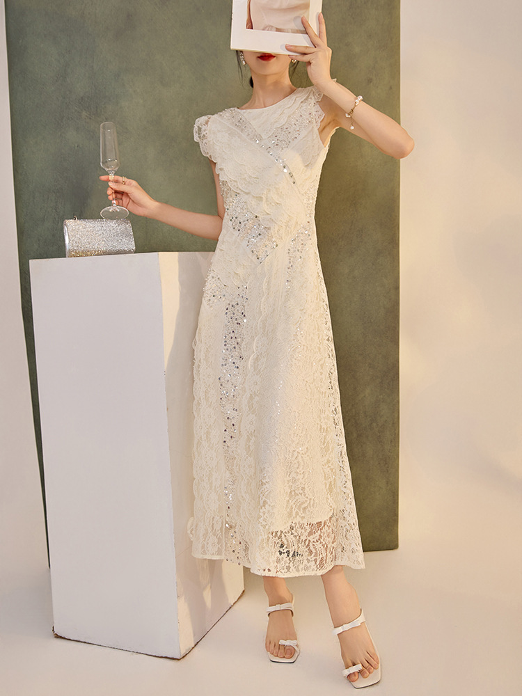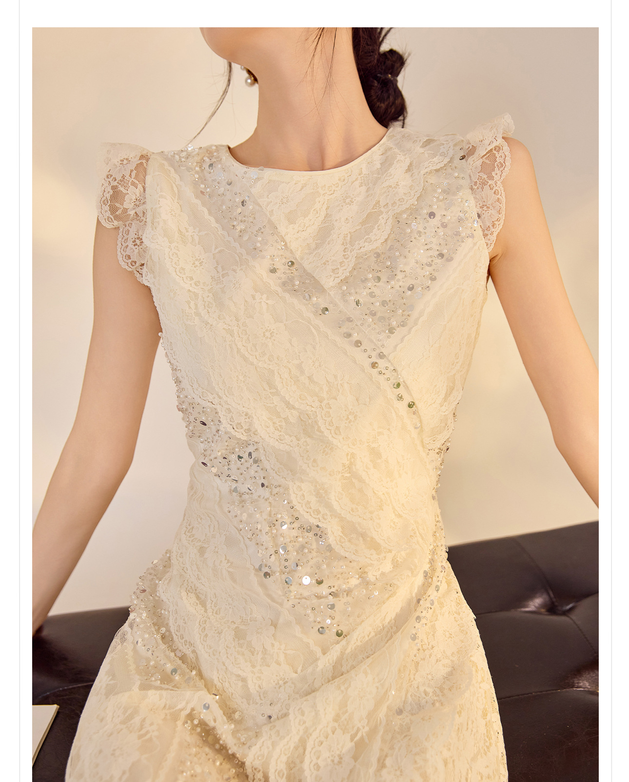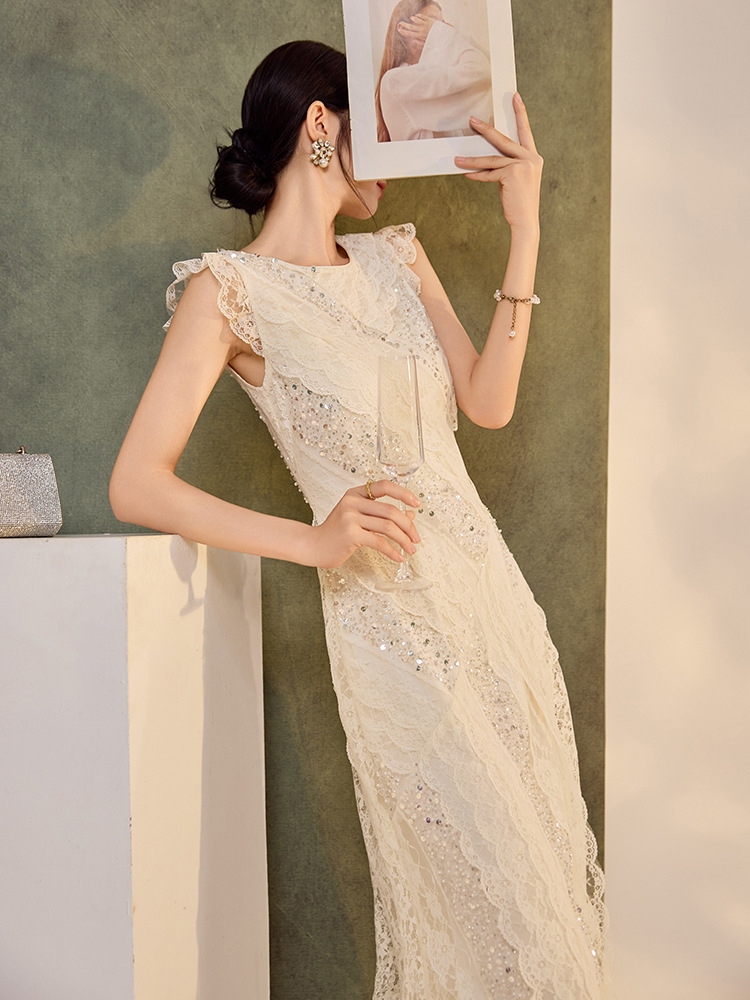 繊細な総レースとビジューが煌めく上品なオケージョン ドレスです。
