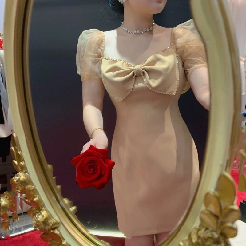 上品で洗練された印象を与えるミニ丈のタイトドレスは、華やかなシーンで存在感を発揮します。