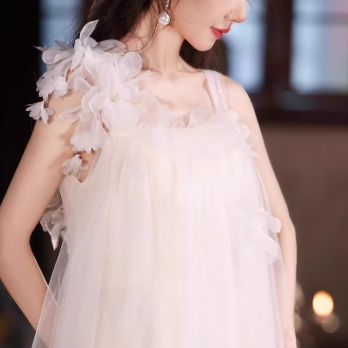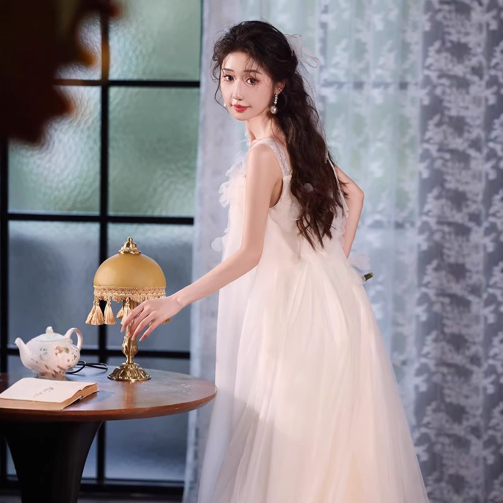 軽やかなチュール素材を贅沢に使用し、ふんわりと広がるシルエットが優雅な雰囲気を演出します。