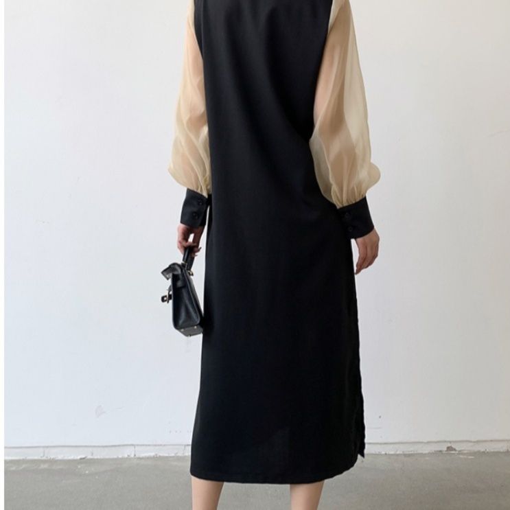 透け感のある袖が上品な雰囲気を演出し、シンプルな装いに華やかさをプラス