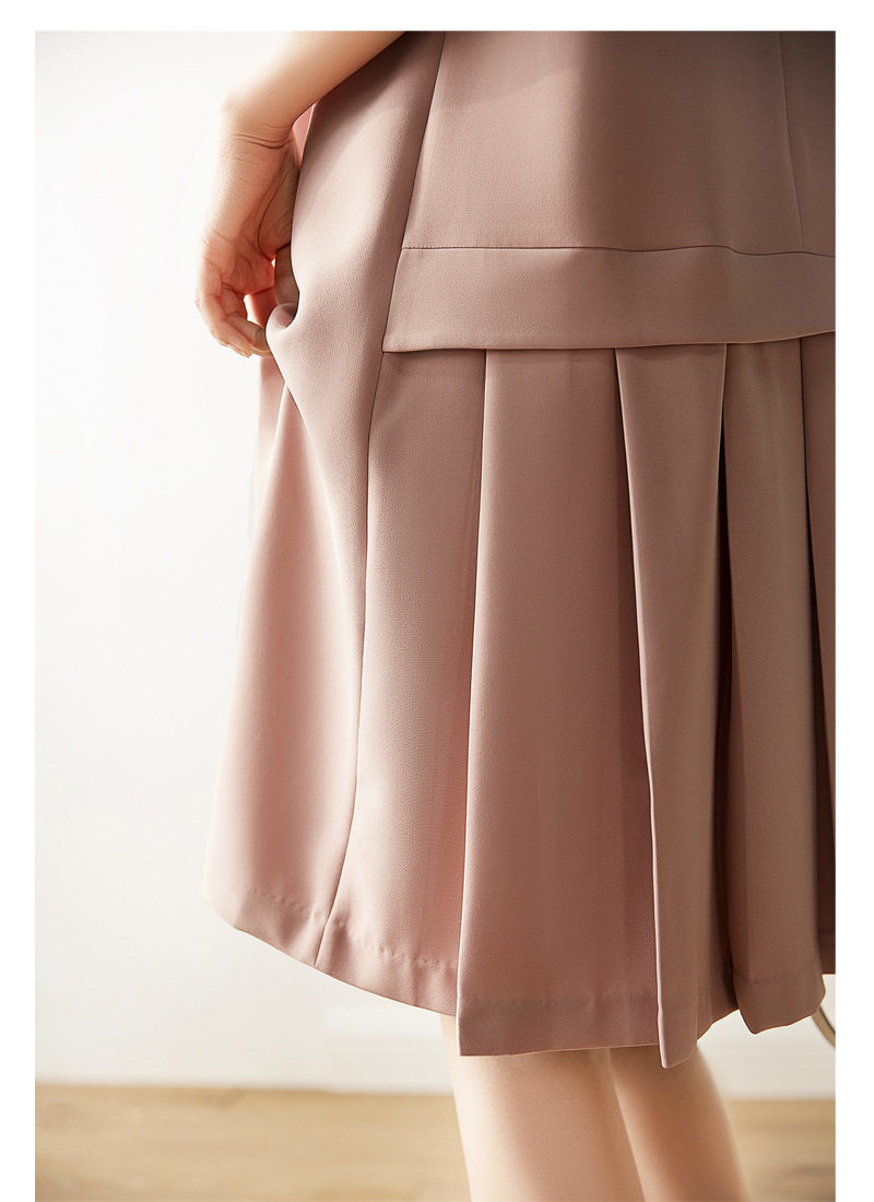 光沢のある滑らかな生地を使用し、適度なゆとりのあるシルエットが体型をカバーしながら、きちんと感を演出します。