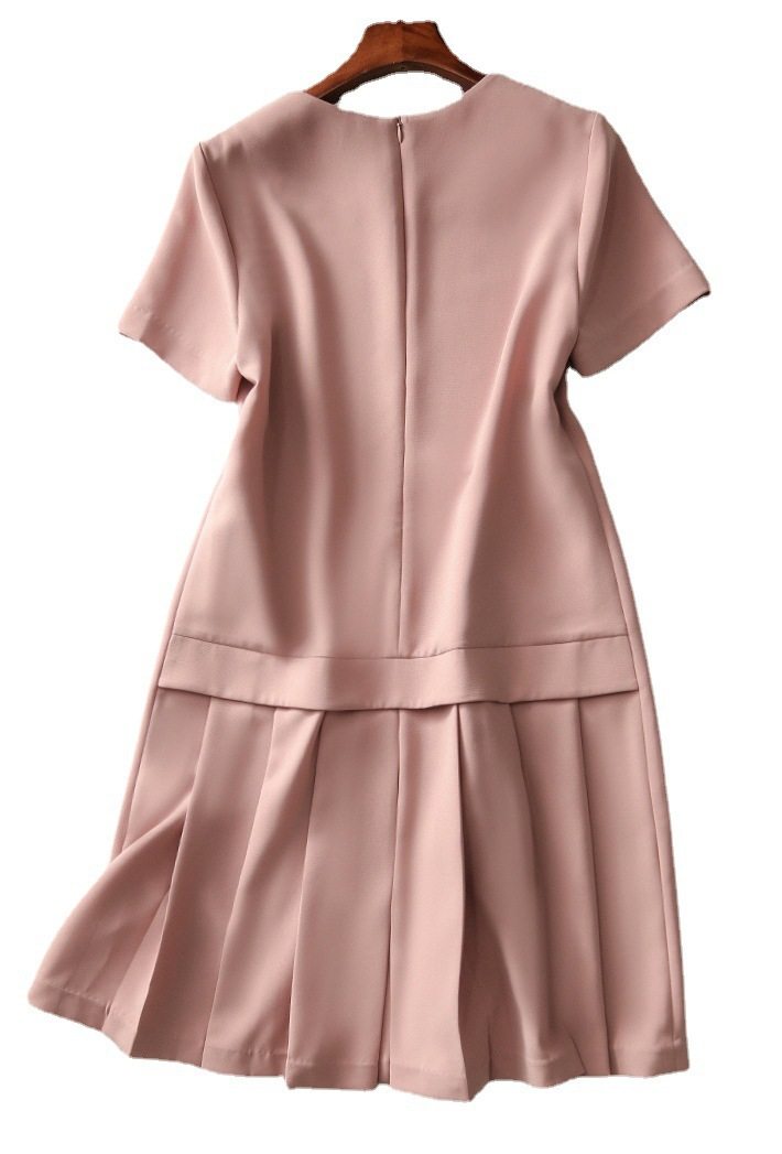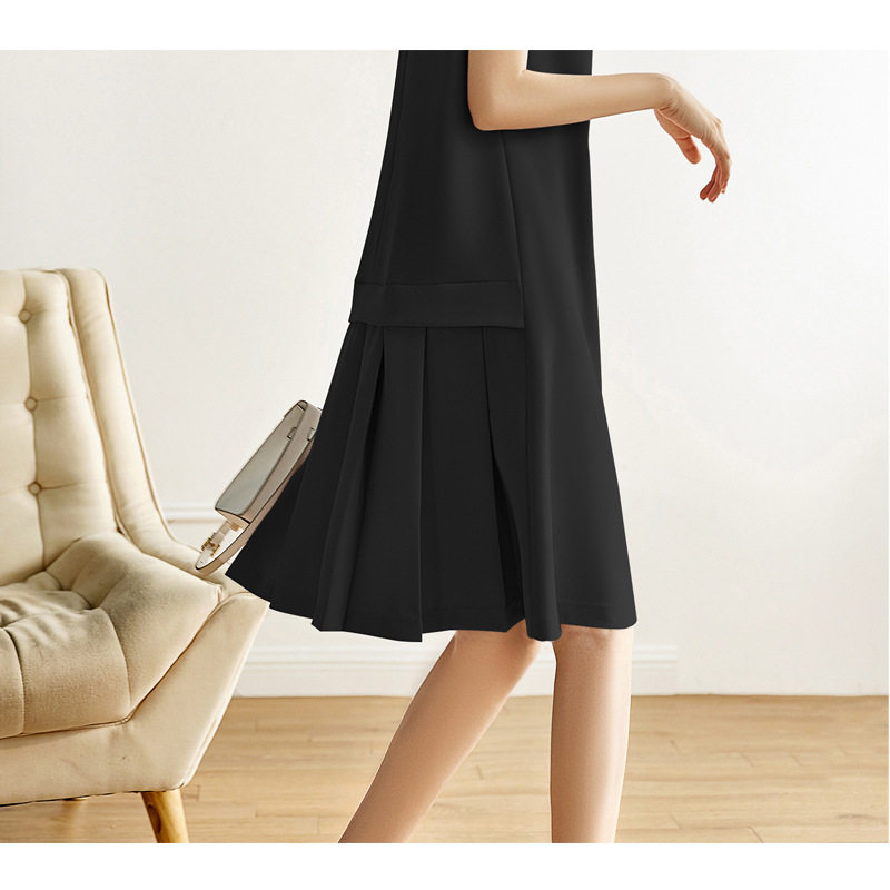 フレア袖が二の腕を優しくカバーし、膝丈のワンピースは様々なシーンで活躍します。