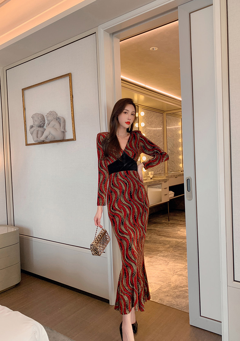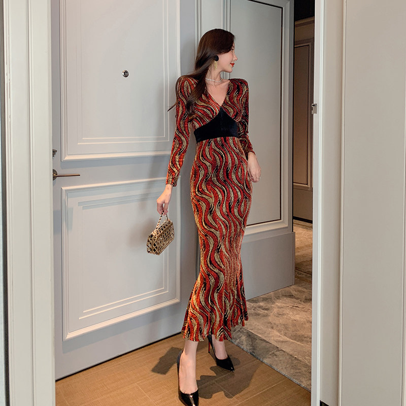 華やかな波模様のラメニットが目を惹くオケージョン ドレスです。