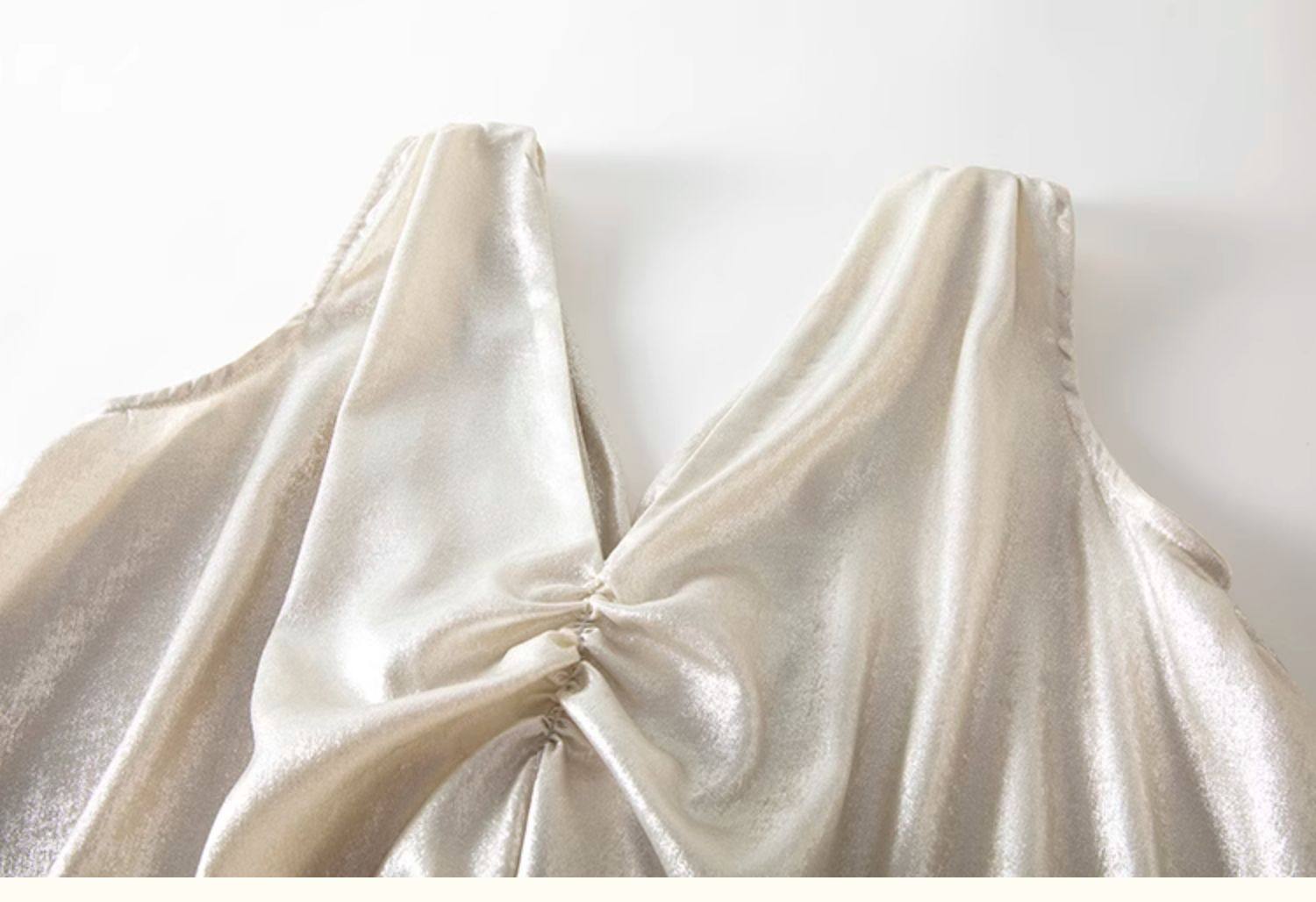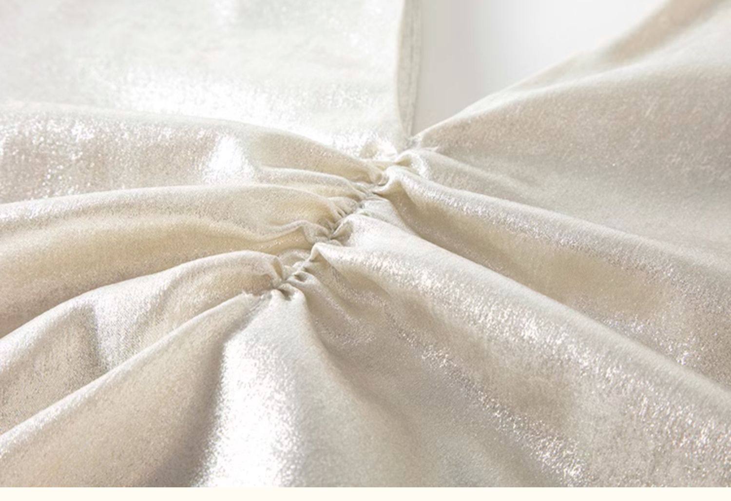 胸元のツイストディテールが立体感を生み出し、女性らしさを引き立てます。