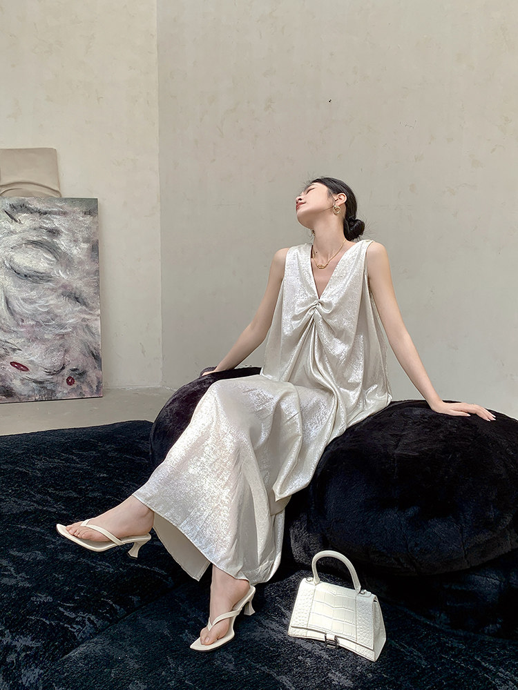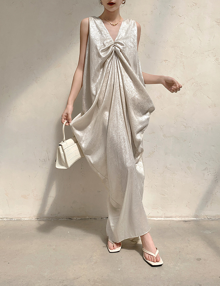 ノースリーブデザインで季節を問わず着回せる万能な一着です。