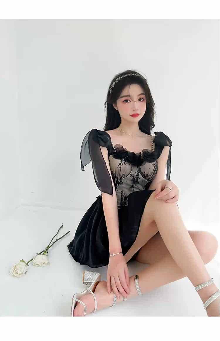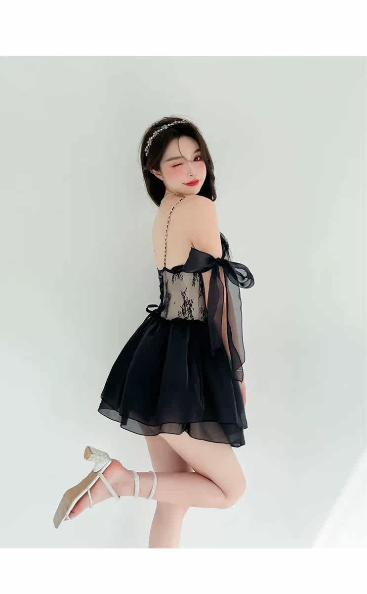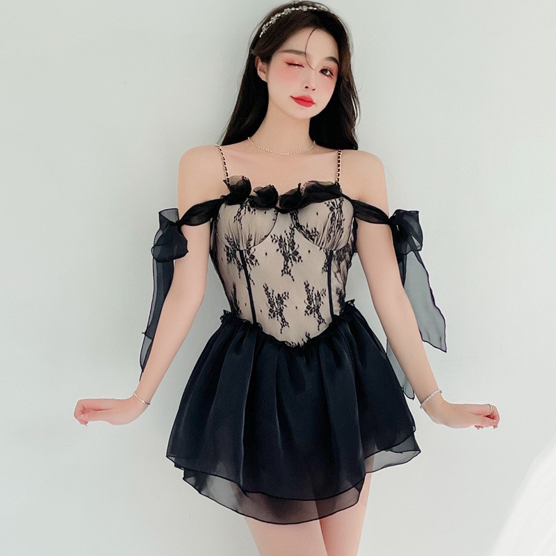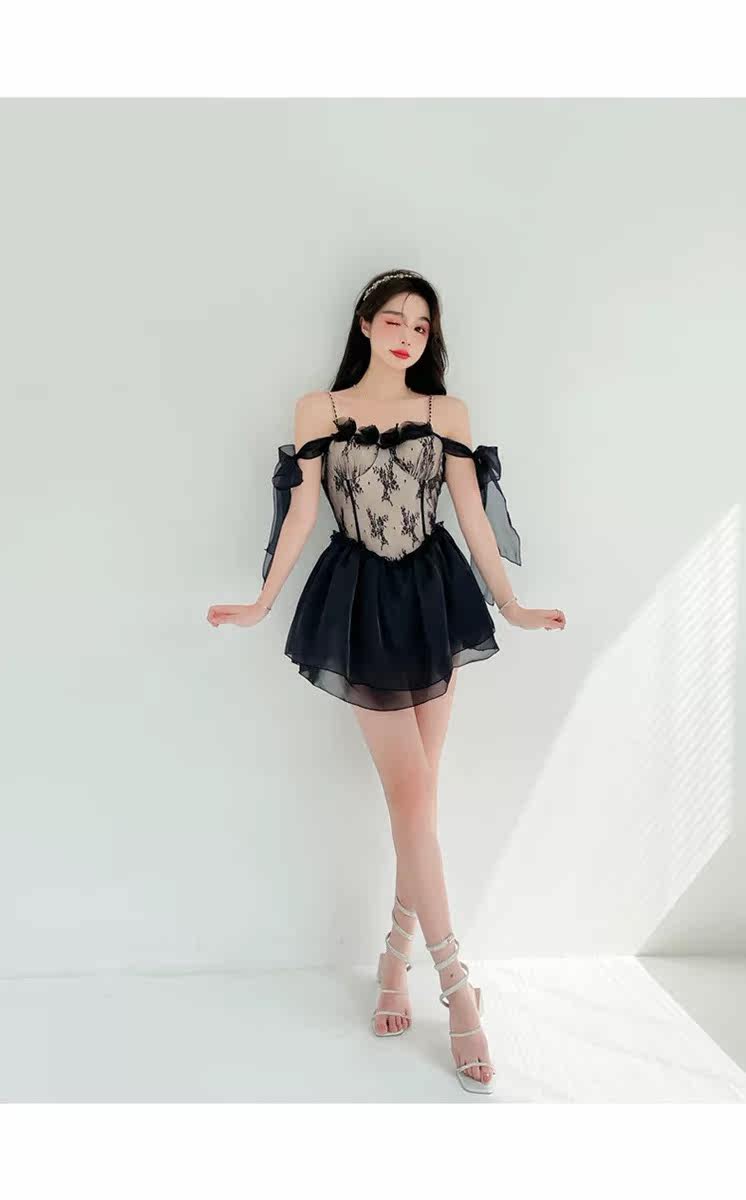 繊細なレースの装飾が大人の魅力を引き立てる一着です。