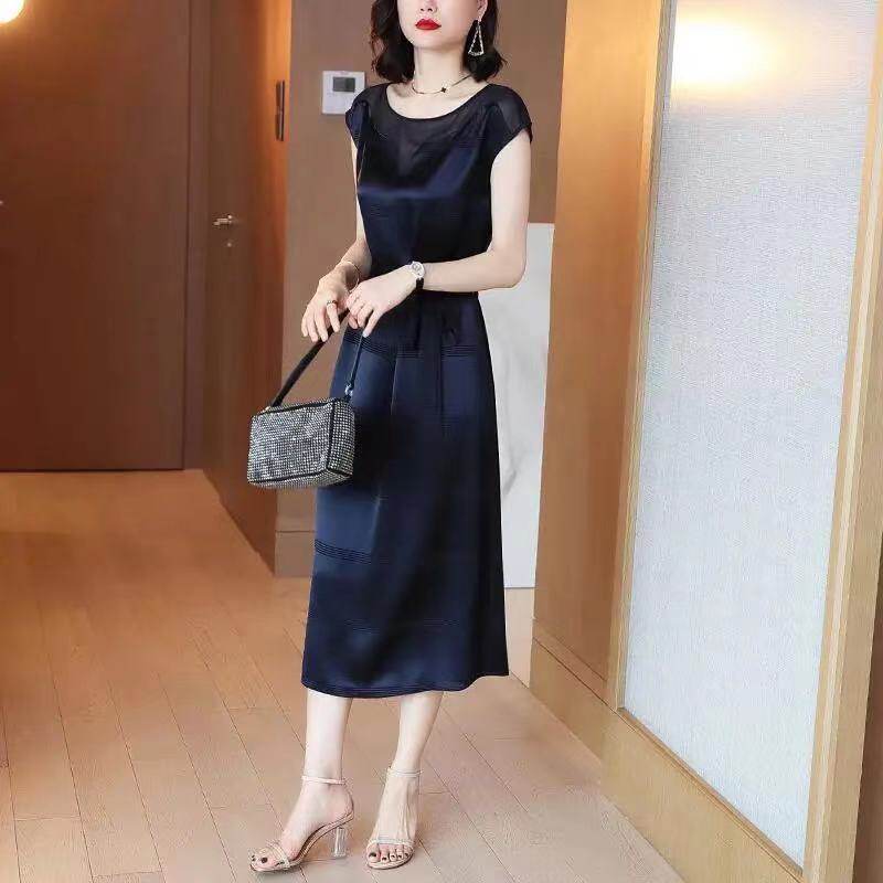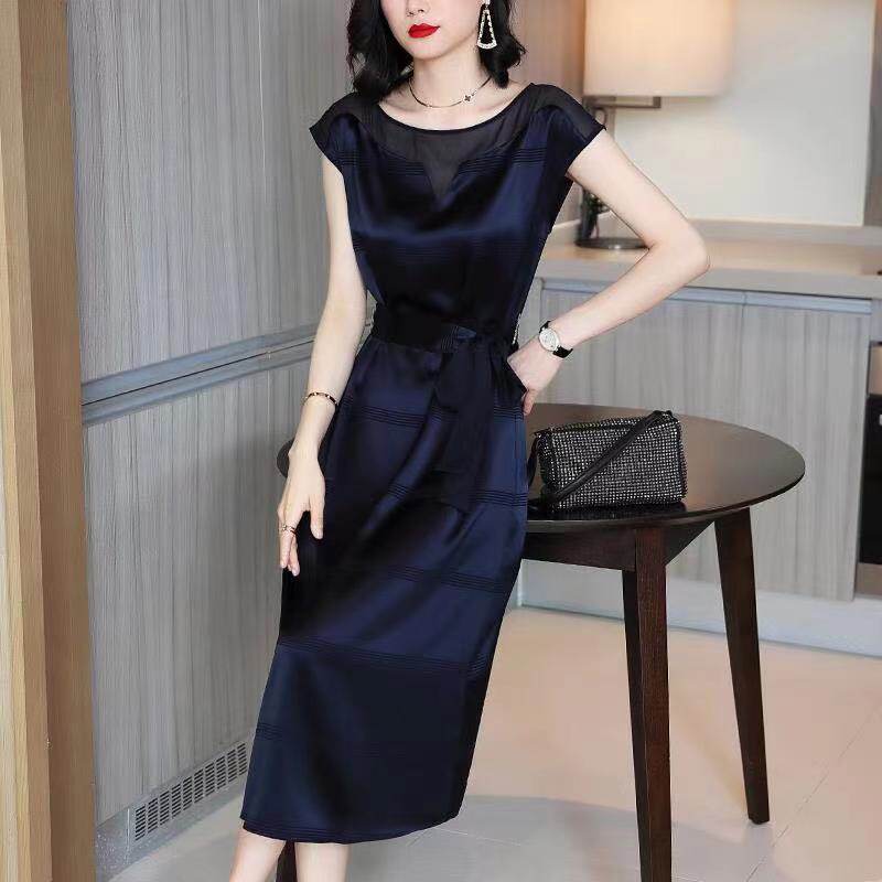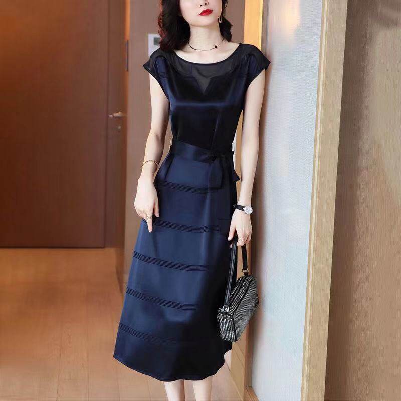 フレンチスリーブが二の腕をすっきり見せ、ウエストマークのデザインがスタイルアップを実現します。