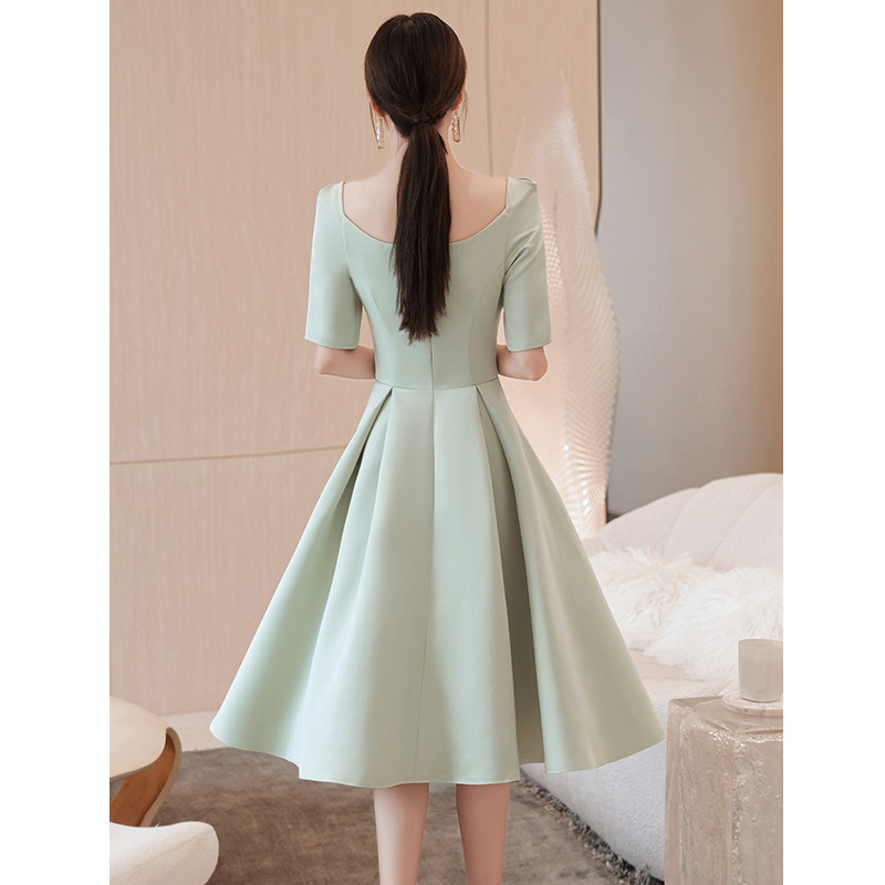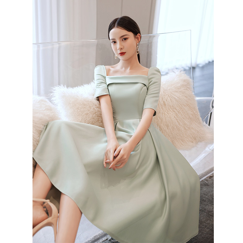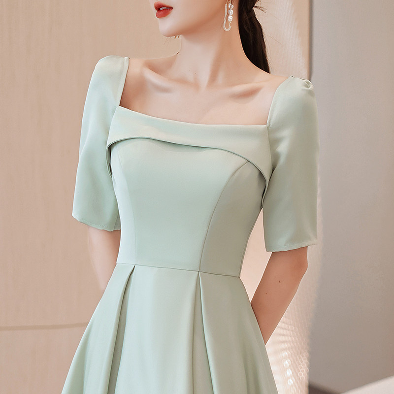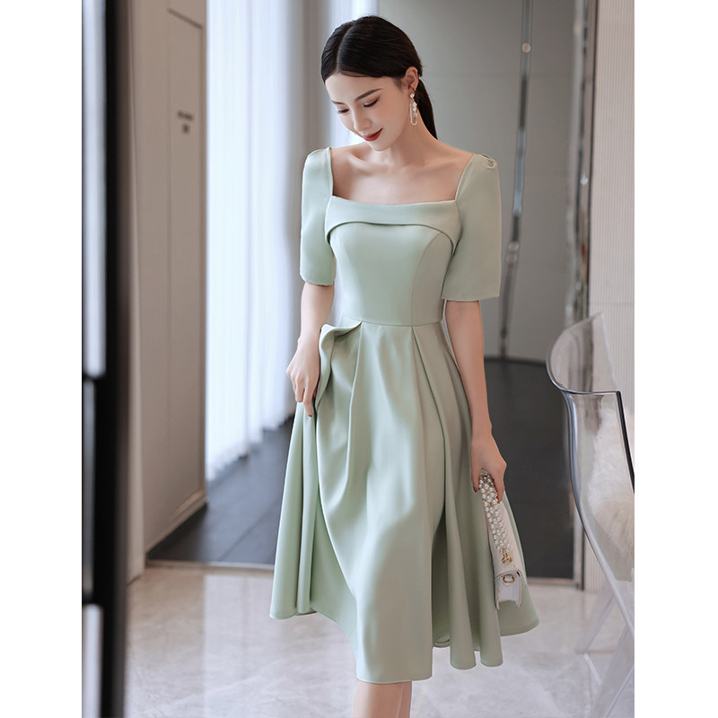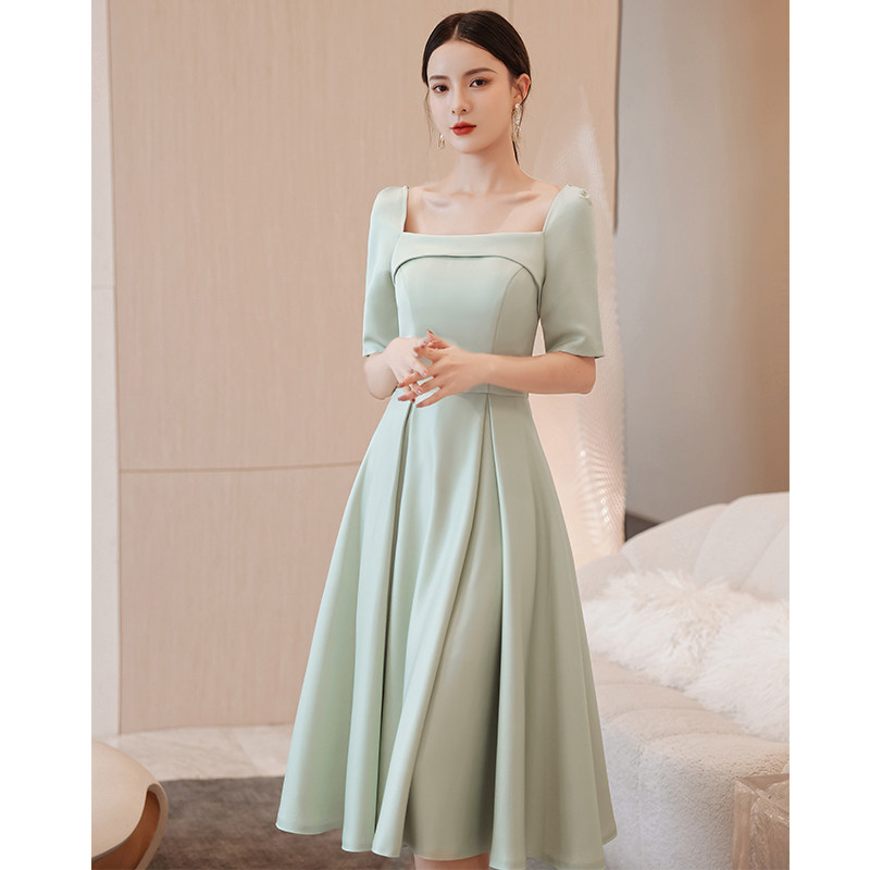優雅なスクエアネックラインが美しいデコルテを引き立てるオケージョン ドレスです。